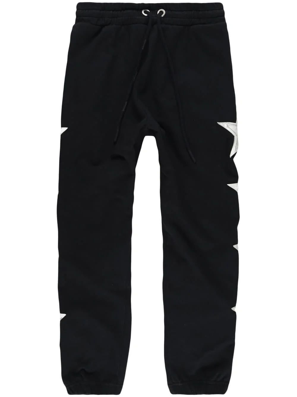 star-patch cotton track pants 3D star patches are embroidered down the sides of these Palm Angels track pants, lending the sporty silhouette some depth. The cotton pair is finished with the brand's signature gothic script logo printed across the back. Highlights - Black/white - Cotton - Star patch detail - Logo print to the rear - Elasticated waistband with internal drawstring - Straight leg - Two side inset pockets - Elasticated ankles Made in Italy Composition Cotton 100% Washing instructions Read Manufacturer Guidelines