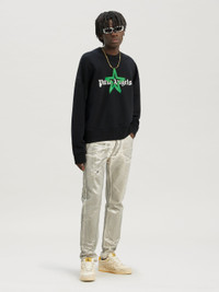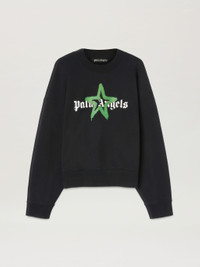 LONG SLEEVES SWEATSHIRT IN BLACK COTTON WITH WHITE "PALM ANGELS" LOGO AND A GREEN SPRAYED STAR PRINTED AT FRONT. CREWNECK COLLAR AND DROP SHOULDERS. FABRIC 100% COTTON MODEL PAOLO WEARS SIZE M HEIGHT: 6’2" (188 CM) CHEST: 33” (85 CM) WAIST: 28” (71 CM) HIPS: 36” (91 CM) PRODUCT ID: PMBA026C99FLE0081055