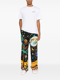 Starry Night drawstring trousers These straight-leg trousers from Palm Angels feature an illustrative style print reminiscent of a starry night, demonstrating the brand's penchant for unique and creative designs. Highlights - Black/multicolour - Illustration-style print - Drawstring waist - Side pouch pockets - Two rear welt pockets - Straight leg Made in Italy Composition Lining: Viscose 100% Outer: Viscose 100% Washing instructions Machine Wash