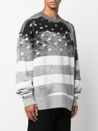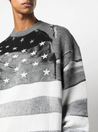stars and stripes-print sweatshirt Paying homage to the brand's American roots, this relaxed sweatshirt from Palm Angels is printed with a faded stars and stripes motif throughout. Made in Italy Composition Polyester 100%, Acrylic 60%, Viscose 20%, Wool 20% SIZE & FIT Model measurements Height 6 ft 2 in(1.87 m) Bust/Chest 38.18 in(97 cm) Hips 36.61 in(93 cm) Waist 29.13 in(74 cm) Washing instructions Dry Clean Only