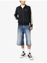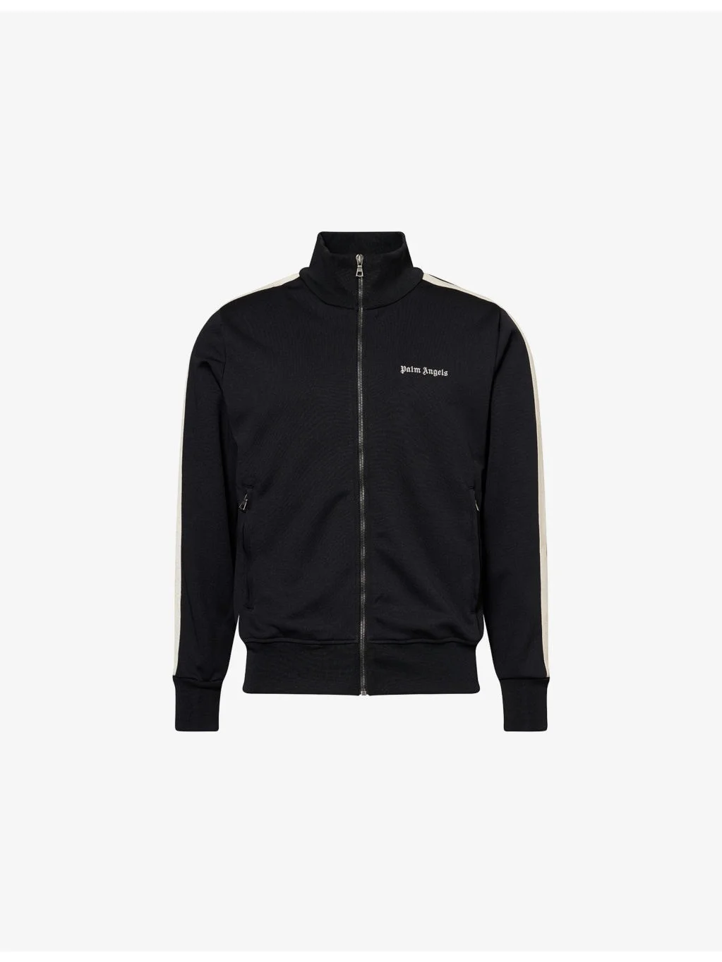 PRODUCT DETAILS - Palm Angels woven jacket - 100% polyester; embroidery 100% polyester; lining 100% polyester; trims 96% polyester, 4% elastane - Exposed zip fastening at front - Regular fit, high neck, striped panels at long sleeves, brand embroidery and two zip pockets at front, ribbed trims - Hand wash cold - Made in Portugal - Model is 6ft 2in/1.88m and wears a size large - Midweight, stretchy Ref: R04404521
