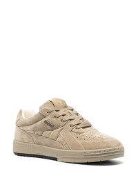 suede low-top sneakers Crafted from a suede construction, these low-top sneakers from Palm Angels finely demonstrate the label's branding-focused style, with the inclusion of logo lettering to the rear of the casual pair. Highlights - Light beige - Calf suede - Panelled design - Perforated toebox - Round toe - Front lace-up fastening - Logo print to the rear - Flat rubber sole Made in Italy Composition Outer: Calf Suede 100% Sole: Rubber 100% Lining: Fabric 100% SIZE & FIT Measurement HEEL 1.18 in(3 cm) Sole height 0.98 in(2.5 cm)