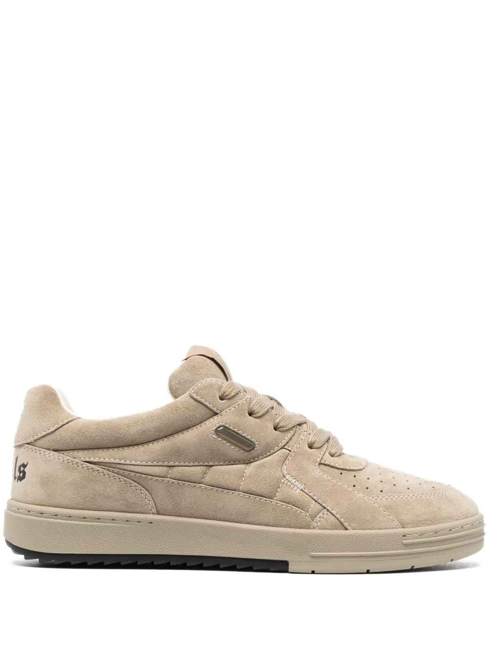 suede low-top sneakers Crafted from a suede construction, these low-top sneakers from Palm Angels finely demonstrate the label's branding-focused style, with the inclusion of logo lettering to the rear of the casual pair. Highlights - Light beige - Calf suede - Panelled design - Perforated toebox - Round toe - Front lace-up fastening - Logo print to the rear - Flat rubber sole Imported Composition Outer: Calf Suede 100% Sole: Rubber 100% Lining: Fabric 100% SIZE & FIT Measurement HEEL 1.2 in(3 cm) Sole height 1 in(2.5 cm)