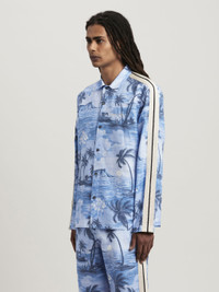 Men's track shirt in blue sunset pattern, button closure, ecru side bands and Palm Angels logo embroidered in white on front. Mohamed wears size M Height: 6' 1"" (185 cm) Bust: 34"" (86 cm) Waist: 28"" (71 cm) Hips: 37"" (94 cm) PRODUCT ID: PMBD056S24FAB0014903