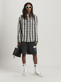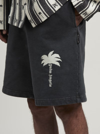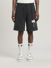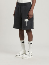 Simple yet distinctive, perfect for sport or lounge. Men's black sweatshirt shorst with elastic waistband and vertical hip pockets and The Palm logo printed in white on left leg. PRODUCT ID: PMCI010S24FLE0030703