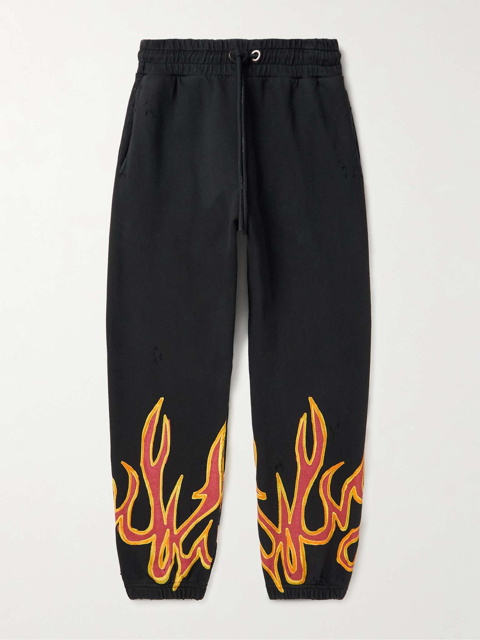Tapered Printed Distressed Cotton-Jersey Sweatpants