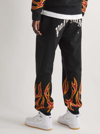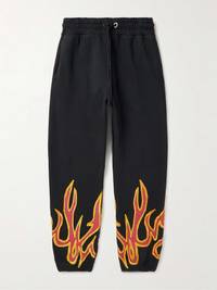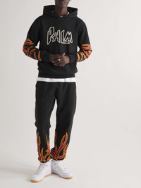 Palm Angels' sweatpants are printed with licks of graffiti flames – they match the coordinating sweatshirt, but you could wear them with a plain black tee, too. Cut from cotton-jersey, this pair is tapered in shape and finished with artful distressing. Size & Fit - Fits true to size. Take your normal size - The model is wearing a size larger to achieve a looser fit - Tapered leg, low-crotch style - Mid-weight, slightly stretchy fabric - Model wears a M - Model measures: waist size 30, height 6'2"/ 188cm Details & Care - Multicoloured loopback cotton-jersey - 100% cotton - Hand wash - Made in Italy