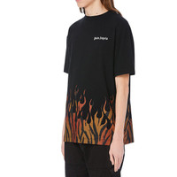 Men's PALM ANGELS Flame Alphabet Logo Printing Short Sleeve Black PMAA001E20JER0011020