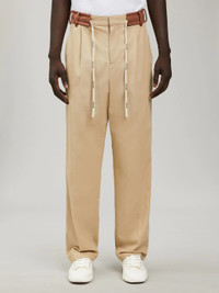 LONG TRACK PANTS IN BEIGE. BELT DETAIL FEATURING WHITE LOGOED DRAWSTRINGS. TWO-POCKET STYLING. WHITE STRIPES AT SIDE. TWO WELTED POCKET ON THE BACK. FABRIC 100% POLYESTER MODEL MASSAER WEARS SIZE 48 HEIGHT: 6'1 (185 CM) CHEST: 31" (80 CM) WAIST: 24" (62 CM) HIPS: 34" (86 CM) PRODUCT ID: PMCA112S22FAB0016164