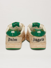 LOW-TOP SNEAKERS IN WHITE WITH AN ALL OVER VINTAGE EFFECT. WHITE RUBBER SOLE. GREEN DETAIL AT BACK WITH PALM TREE GRAPHIC PRINTED IN WHITE. UNIVERSITY LABEL IN GREEN SEWN AT FRONT. "PALM ANGELS" LOGO EMBROIDERED IN BLACK AT BACK. WHITE LACE-UP CLOSURE. LINING 50% LEATHER 50% POLYESTER - SOLE 100% RUBBER - UPPER SHOE 100% LEATHER PRODUCT ID: PMIA078S23LEA0030155