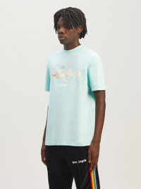 SHORT SLEEVES T-SHIRT IN LIGHT BLUE COTTON WITH SHARK GRAPHIC PRINTED AT FRONT. "PALM ANGELS" LOGO PRINTED IN WHITE AT BACK. REGULAR FIT. FABRIC 100% COTTON MODEL PAOLO WEARS SIZE M HEIGHT: 6’02" (188 CM) CHEST: 33'' (85 CM) WAIST: 28'' (71 CM) HIPS: 35" (91 CM) PRODUCT ID: PMAA001S23JER0054001