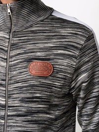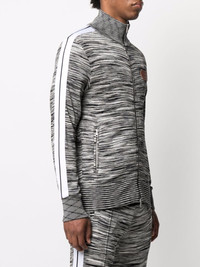 x Missoni melange knit zip-front track jacket his melange knit track jacket is a stand-out piece from the Palm Angels x Missoni collection. Celebrating key house codes, the wearable design boasts a brown leather Heitage logo patch at the chest and a two-way zip front fastening. Made in Italy Composition Viscose 97%, Polyamide 3% SIZE & FIT Model measurements Height 5 ft 10 in(1.79 m) Bust/Chest 33.07 in(84 cm) Hips 35.82 in(91 cm) Waist 24.01 in(61 cm) FittingInformation This piece is unisex. Please take care when selecting your size Designed for a slim fit for men and a loose fit for women Made with a mid-weight fabric Washing instructions Dry Clean Only
