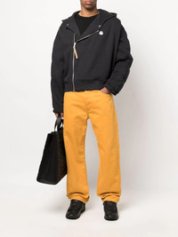 x Moncler side zip fastening padded jacket Combining Palm Angel's irreverent aesthetic with Moncler's outerwear craftsmanship knowledge, this jacket is presented as part of the SS22 collection. Crafted from cotton-blend on the front and boasting a feather down padded design to the rear, this jacket features a side zip fastening, slouchy hood and stands out thanks to the Moncler logo patch on the front and bold Palm Angels print to the rear. Made in Italy Composition Outer: Polyamide 100%, Cotton 86%, Hemp 14% Lining: Feather Down 100%, Polyamide 100%, Cotton 86%, Hemp 14% SIZE & FIT Model measurements Height 5 ft 10 in(1.79 m) Bust/Chest 31.88 in(81 cm) Hips 35.43 in(90 cm) Waist 23.62 in(60 cm) FittingInformation This piece is unisex. Please take care when selecting your size Designed for a loose fit for men and an oversized fit for women Made with a mid-weight fabric Washing instructions Hand Wash