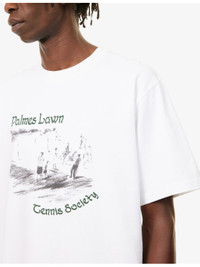 PRODUCT DETAILS - Palmes cotton t-shirt - 100% cotton - Relaxed fit, ribbed crewneck, short sleeves, text and graphic print at front - Machine wash at 30°C - Made in Portugal - Model is 6ft 2in/1.88m and wears a size medium - Lightweight, non-stretch Ref: R04489266