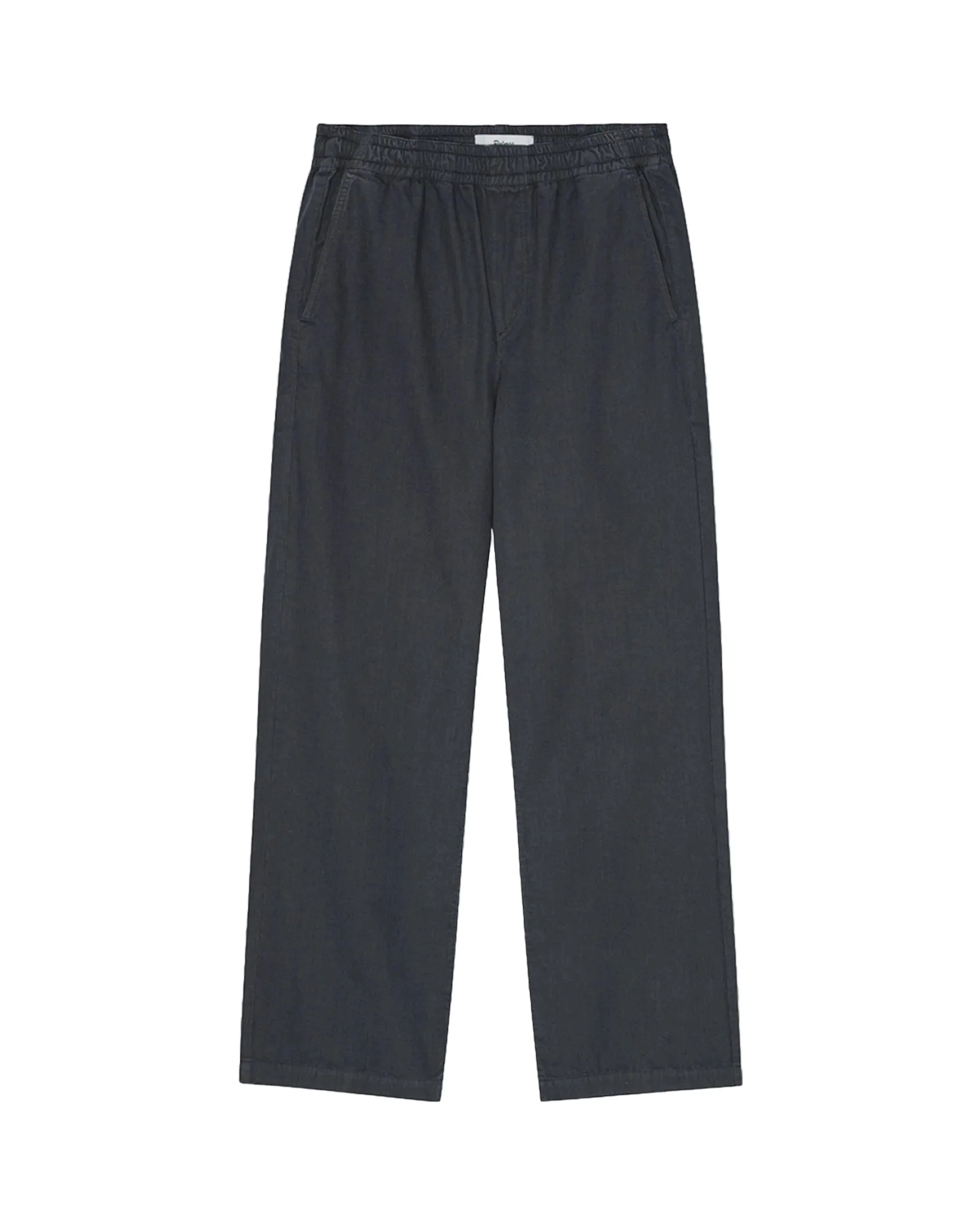 Palmes' Lucien Trouser pairs durable midweight cotton ripstop with a comfortable wide-leg silhouette. The chacoal design includes an elastic waistband with drawstring, slanted front pockets, and reinforced back pockets for everyday wear. 100% Cotton