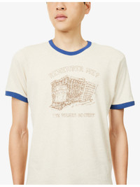 PRODUCT DETAILS - Palmes cotton blend t-shirt - 70% cotton, 30% linen - Round neck, short sleeves, graphic print at front, ribbed contrast trims - Machine wash at 30°C - Model is 6ft 2in/1.88m and wears a size medium - Lightweight, slight stretch Ref: R04489270