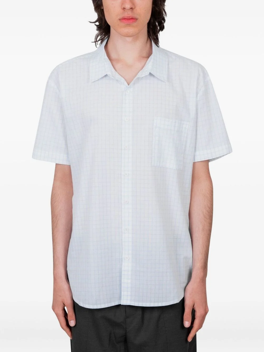 grid-pattern short-sleeve shirt Highlights - Light blue - Grid pattern - Short sleeves - Button fastening - Chest pocket - Point collar Imported Composition Cotton 100% Washing instructions Read Manufacturer Guidelines