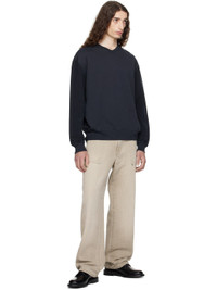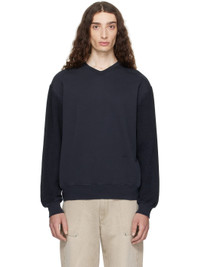 Organic cotton French terry sweater. · Paneled construction · Rib-knit V-neck, hem, and cuffs · Logo embroidered at front · Reversed French terry sleeves · Locker loop at back collar Supplier color: Navy 100% organic cotton. Made in Portugal 252648M206002