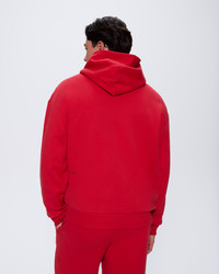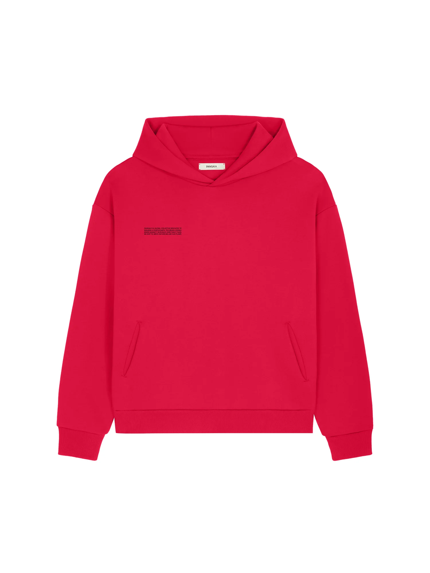 Carefully crafted color, rooted in the season ahead. Expertly crafted from 50% OCS-certified organic and 50% recycled cotton, the 365 Heavyweight Hoodie in Goji Red offers a brand new nature-inspired hue, an ultra-soft feel, an oversized fit and a structured silhouette that holds its shape. Designed for everyday ease, this timeless take on warmth was treated with PPRMINT™ oil to help keep it fresher for longer.• Material: 50% OCS-certified organic cotton50% recycled cotton420 GSM • Fit: Oversized• Feel: Ultra-soft • Designed for: Everyday ease • Details: Hooded, kangaroo pouch pockets, ribbed cuffs and hem, textblock (on chest) • Made in: Portugal Size & fit Fit: Oversized Oversized - An exaggerated fit with a boxy shape, think an elevated style that makes a statement. Size down for a more traditional fit, or size up for a bold silhouette. Care & composition - Organic Cotton - Recycled Cotton - PPRMINT™ - 420 GSM - Made in Portugal - Genderless Fit 50% Organic Cotton 50% Recycled Cotton Treated with natural peppermint (PPRMINT™) to keep it fresh longer. Trims and labels All trims, labels and threads are either recycled or responsibly sourced. Packaging Product packaging is part bio-based, acting to preserve both your new garment and environment. Once opened, please discard responsibly in a compost facility to allow full disappearance within 24 weeks. Care - Gentle machine wash with similar colors - Iron on reverse, do not iron on print and trims - Line dry away from direct sunlight - Do not bleach - Do not tumble dry - Do not dry clean
