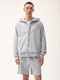 THE PANGAIA 365 MIDWEIGHT SNAP BUTTON HOODIE IN GREY MARL COMBINES COMFORT AND FUNCTIONALITY IN ONE VERSATILE PIECE. MADE FROM 100% ORGANIC COTTON AND TREATED WITH PPRMINT™ FOR LASTING FRESHNESS, THIS HOODIE IS DESIGNED FOR YEAR-ROUND WEAR.