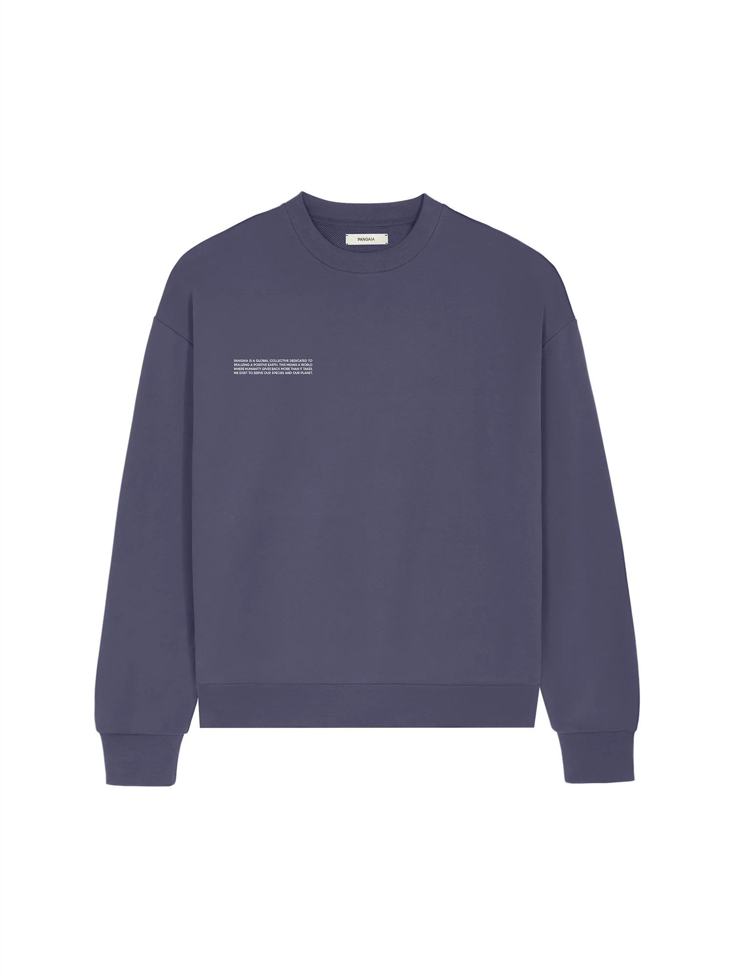 Wear with wonder. Expertly crafted from 100% OCS-certified organic cotton, the 365 Midweight Sweatshirt in slate blue offers a brand-new, cosmos-inspired color, an ultra-soft feel and a boxy silhouette. Designed for year-round wear, the latest addition to the Midweight family was treated with PPRMINT™ oil to help keep it fresher for longer.Material: 100% OCS-certified organic cotton320 GSM Fit: Relaxed Feel: Ultra-soft Designed for: Year-round wear Details: Crew neck ribbed collar, ribbed cuffs and hem, text block (on chest), wordmark (on back) Made in: Portugal Size & fit Relaxed - For a touch of laid-back, opt for our relaxed fit. It's roomier than regular without feeling overly baggy. Stay in your normal size for a comfortable look or size down for a more regular fit. Care & composition - Organic Cotton - PPRMINT™ - 320 GSM - Made in Portugal 100% Organic Cotton Treated with natural peppermint (PPRMINT™) to keep it fresh longer. Trims and labels All trims, labels and threads are either recycled or responsibly sourced. Packaging Product packaging is part bio-based, acting to preserve both your new garment and environment. Once opened, please discard responsibly in a compost facility to allow full disappearance within 24 weeks. Care - Gentle machine wash with similar colors - Line dry away from direct sunlight - Iron on reverse, do not iron on print and trims - Do not bleach - Do not tumble dry