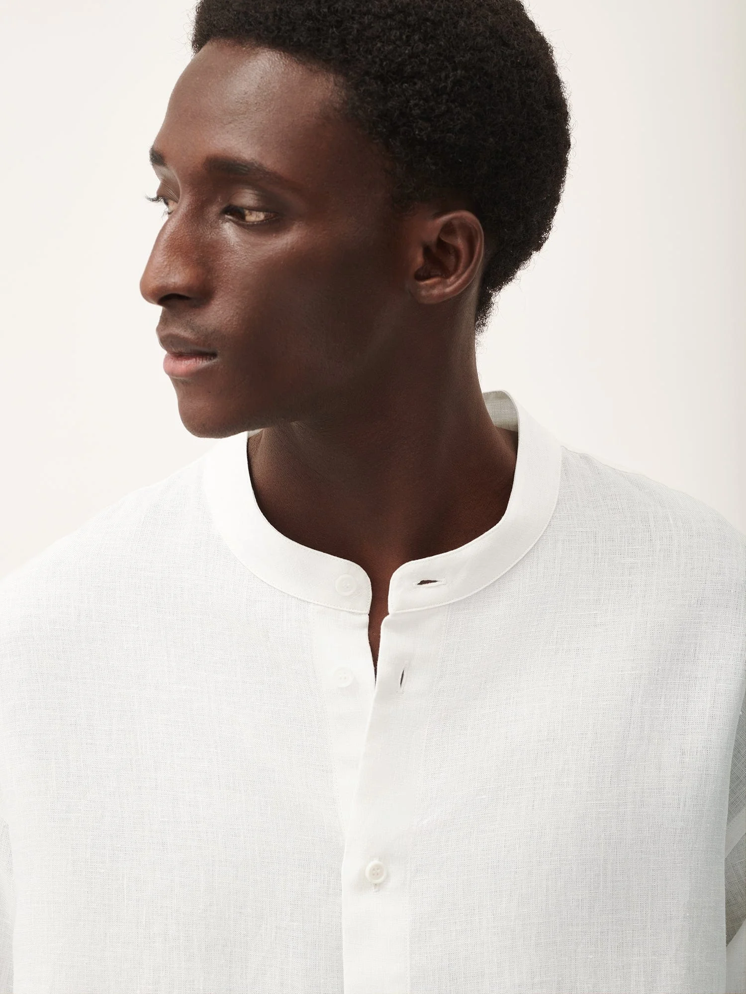 Mens DNA Aloe Linen Mandarin Collar Long Sleeve Shirt - Off-White