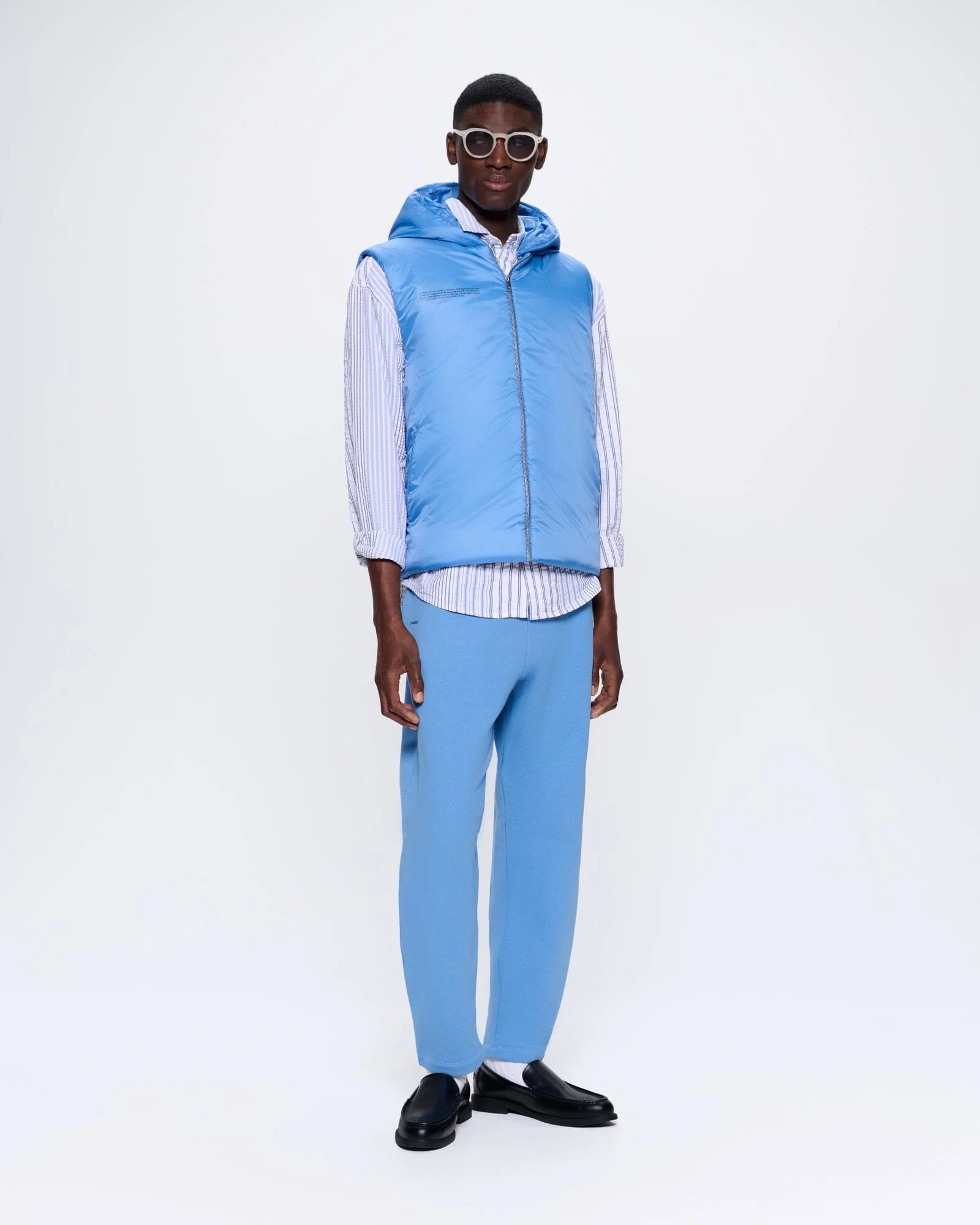 THIS GILET IS MADE WITH FLWRDWN™, A BIOBASED, ANIMAL-FREE ALTERNATIVE TO DUCK AND GOOSE DOWN. IT IS DESIGNED WITH A DETACHABLE HOOD AND CREATED USING WILDFLOWERS AND A BIOPOLYMER DERIVED FROM CORN. IT HAS A LIGHTWEIGHT OUTER SHELL MADE FROM 100% RECYCLED NYLON, DIVERTING PRE-CONSUMER WASTE MATERIALS FROM LANDFILL.