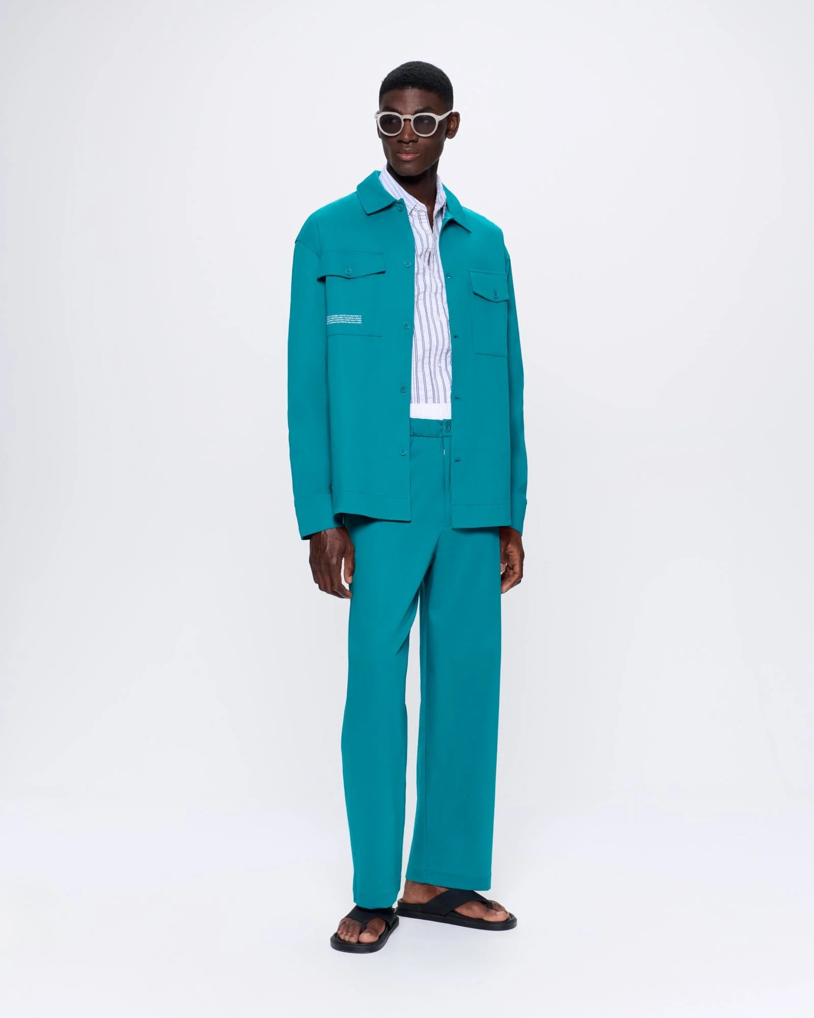 Inspired by nature, made for metropolitan moments. Expertly crafted from 100% organic cotton, the Interlock Jacket in Malachite Green offers an ultra-soft feel and a boxy silhouette that holds its shape. Designed for your city wardrobe, this versatile style was treated with PPRMINT™ oil to help keep it fresher for longer. Material: 100% 240 GSM OCS-certified cotton Fit: Boxy silhouette Feel: Lightweight and breathable Designed for: Everyday comfort Details: Long sleeves, front pockets, cuffs, collar and button fasteningsMade in: Portugal