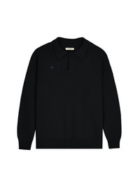 ADD A TOUCH OF ELEGANCE TO YOUR WARDROBE WITH THE PANGAIA RECYCLED CASHMERE POLO SWEATER IN BLACK. MADE FROM A BLEND OF RECYCLED CASHMERE, THIS SWEATER OFFERS LUXURIOUS SOFTNESS AND A SOPHISTICATED STYLE THAT’S PERFECT FOR ANY OCCASION.