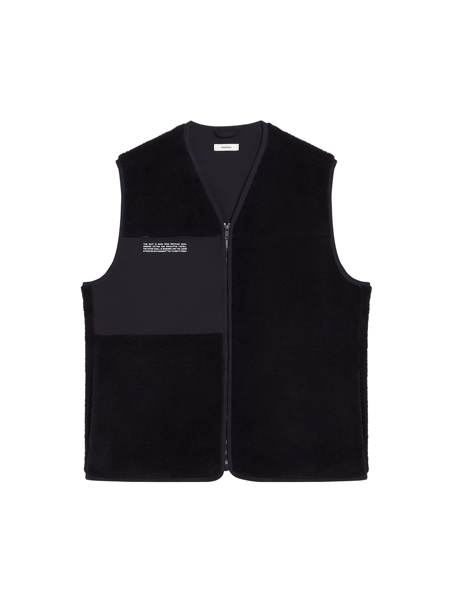 THIS FLEECE GILET IS MADE WITH RECYCLED WOOL AND THE LINING IS MADE FROM COTTON. IT IS TREATED WITH PEPPERMINT OIL (PPRMINT™) FOR ITS ANTI-ODOR PROPERTIES.