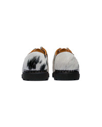 There are certain items where a picture is worth a thousand words. We feel like this is one of those situations. Enjoy. Cowhide fur (is that a thing?) Each variant will differ from shoe to shoe as each one is unique in nature based on the fur! DETAILS - Smooth leather & cow hair - Piped seam & 2 eyelets - Leather lining - Rubber sole - Norwegian welt - Made in France
