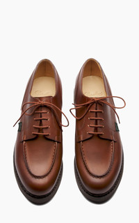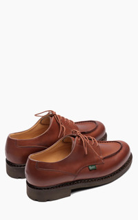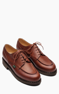 This all-season golf model is reminiscent of the stunning Loire valley chateaux. The Chambord boasts 45° stitching on the apron, a technique found only on Paraboot shoes. Its unique shape makes it suitable for even the narrowest of feet. - Style: Chambord - Color: Lisse Marron - Material: 100% leather - Pinched upper Derby - 5 eyelets - Leather lined model - Norwegian welted - Rubber sole - Made in France