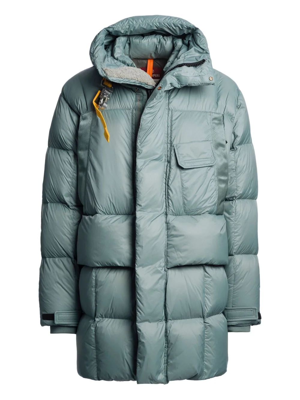 Bold hooded parka jacket Highlights - Sea green - Quilted design - Hooded neckline - Pouch pocket - Adjustable straps - Full-length zip fastening Imported Composition Lining: Recycled Nylon 100%, Duck Down 90%, Duck Feathers 10% Outer: Cordura® Polyamide 100%