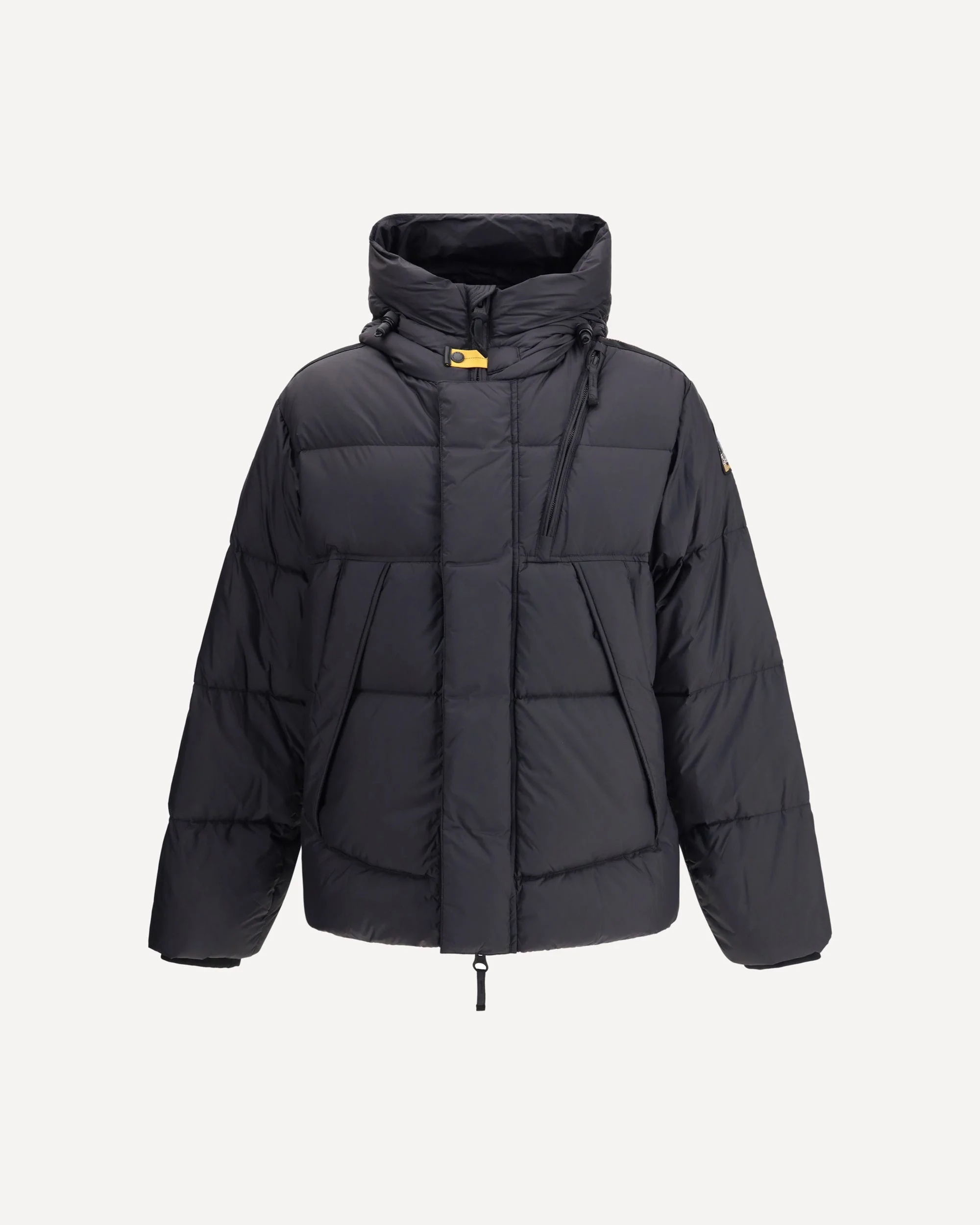 The Down hooded Down Jacket by Parajumpers features a double-slider front zipper closure, protected by a windproof flap with snap buttons. The hood is adjustable with drawstrings, while the garment offers three exterior zippered pockets and two interior pockets. The waist and bottom are adjustable with drawstrings, and the cuffs are made of elastic rib for a better fit. Completing the design is the reflective PJS logo on the back yoke, the Parajumpers patch on the sleeve, and the iconic removable yellow tape at the neck closure. DETAILS - Sku: 25WMPMPUPP01_0541 - Season: AW25 - Fit: Regular - Composition: INNER 100% Duck Down OUTER 100% Nylon - MADE IN CHINA