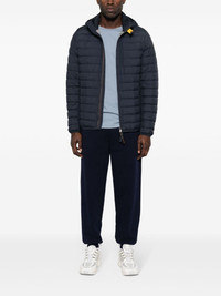 Last Minute hooded puffer jacket Highlights - Navy blue - Duck down - Padded design - Ribbed collar - Classic hood - Long sleeves with elasticated cuffs - Logo patch at the sleeve - Zip-fastening chest pocket - Front zip fastening pockets - Straight hem - Internal slip pocket - Full lining - Front two-way zip fastening Imported Composition Outer: Polyester 100% Lining: Polyamide 100%, Polyester 100%, Duck Down 90%, Duck Feathers 10% SIZE & FIT Model measurements Height 6 ft 0 in(1.84 m) Bust/Chest 35.82 in(91 cm) Hips 37 in(94 cm) Waist 28.34 in(72 cm) FittingInformation Designed for a slim fit, offering a comfortable fit that sits just away from the body The elasticated hem allows for movement and a comfortable fit Made from a padded non-stretch fabric, giving it no natural elasticity This piece fits true to size – take your usual size