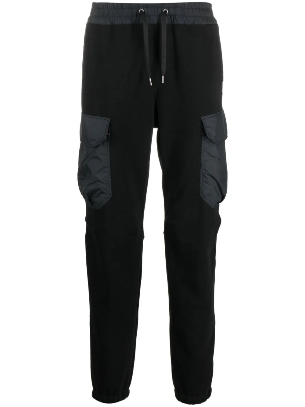 logo-applique drawstring track pants Highlights - Black - Panelled design - Applique logo - Elasticated drawstring waistband - Elasticated ankles - Slip-on style - Two side cargo pockets Imported Composition Cotton 85%, Polyester 15% Washing instructions Machine Wash