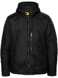Nivek hooded jacket Imagined for moderate cold, Parajumpers' Nivek jacket is crafted with soft padding, windproof fabric, and finished with a water-repellent treatment for extra protection against the elements. Furthermore, it continues the label's penchant for convenient design by featuring a drawstring hood and multiple concealed pockets. Highlights - Black - Ripstop texture - Water-repellent - Windproof - Logo patch at the shoulder - Contrast stitching - Drawstring hood - High neck - Long sleeves - Adjustable press-stud fastening cuffs - Ribbed cuffs and hem - Two side concealed zip-fastening pockets - Front zip-fastening pocket - Internal touch-strap fastening pocket - Branded zip puller - Authenticity qr code - Front press-stud and zip fastening Imported Composition Lining: Polyester 100%, Polyamide 100% Outer: Polyamide 100% SIZE & FIT Model measurements Height 6 ft 0 in(1.84 m) Bust/Chest 35.82 in(91 cm) Hips 37 in(94 cm) Waist 28.34 in(72 cm) FittingInformation Designed for a regular fit, allowing for a comfortably loose fit throughout the body The internal drawstring at the hem allows for fitted preferences Made from a padded non-stretch fabric, giving it no natural elasticity This piece fits true to size – take your usual size Washing instructions Machine Wash