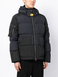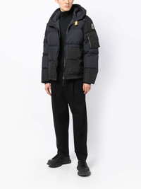 two-tone hooded padded jacket pencil black padded design two-tone design logo patch at the sleeve sleeve zip pocket two side zip-fastening pockets drawstring hood front zip fastening press-stud fastening collar long sleeves straight hem Imported Composition Outer: Polyamide 100% SIZE & FIT Model measurements Height 6 ft 2 in(1.87 m) Bust/Chest 34.25 in(87 cm) Hips 36.22 in(92 cm) Waist 29.52 in(75 cm) FittingInformation This piece fits true to size. We recommend you get your regular size Cut for a loose fit Made with a mid-weight non-stretch fabric