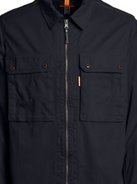 zip-front flap-pocket jacket Highlights - Dark blue - Zip front fastening - Two flap pockets - Long sleeves - Buttoned cuffs - Branded patch Imported Composition Cotton 98%, Elastane 2% Washing instructions Machine Wash