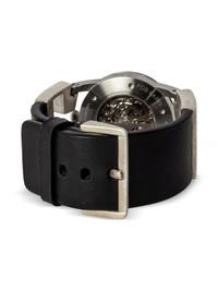 Buckle Skeleton 42mm Highlights - Black - Leather strap - Round case shape - 42mm case size - Silver dial - Skeleton dial type - Exposed movement - Stainless steel bezel - Automatic movement - Buckle clasp crown - This item comes with a standard one-year warranty from the boutique. - Normal everyday use and external agents may reduce the lustre of gemstones and gold surfaces. to maintain, use specific, non-abrasive products specially meant for cleaning jewellery. Imported Composition Sapphire Crystal 100%, Buffalo Leather 50%, Sterling Silver 50% SIZE & FIT Measurement DIAMETER 7.08 in(18 cm)