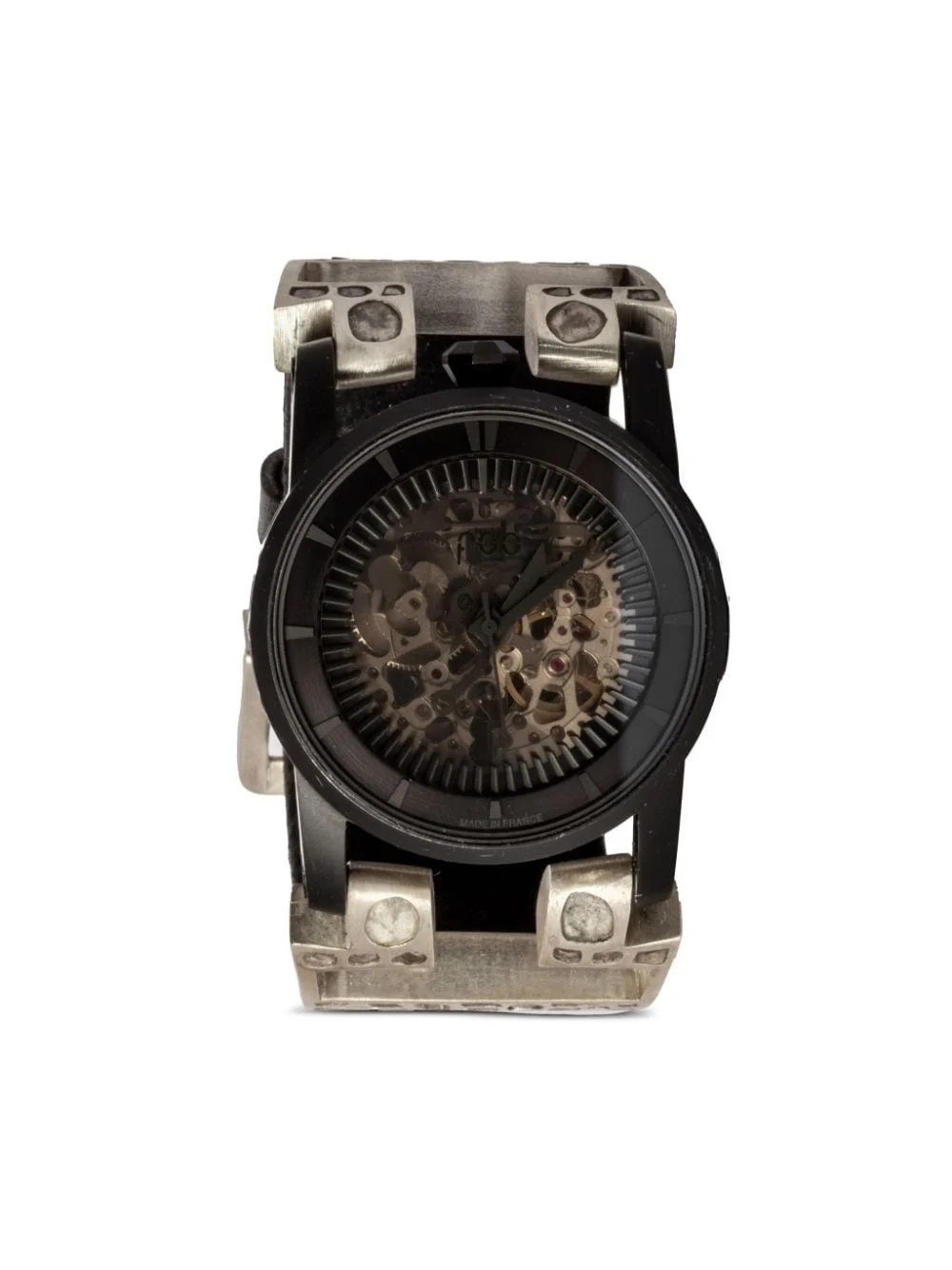 P4—FOB #443 42mm Highlights - Sterling silver - Automatic movement - Silver-tone - Skeleton dial - Baton hands - Round face - Mineral glass - Rough-cut diamonds - Skeleton case back - Leather strap - Pin-buckle fastening - Central hours, minutes and seconds - 40-hour power reserve - This item comes with a standard one-year warranty from the brand. Made in France SIZE & FIT Measurement CIRCUMFERENCE 7.08 in(18 cm) DIAMETER 1.65 in(4.2 cm) WIDTH 1.18 in(3 cm)