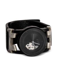 P4—FOB #396 41.3mm Highlights - Black dial - Round case - Skeleton dial - Metal bezel - Miyota 8n24 automatic skeleton movement - Studded leather strap - This item comes with a standard one-year warranty from the brand. Made in France SIZE & FIT Measurement DIAMETER 1.62 in(4.1 cm) Strap width 1.29 in(33 mm)
