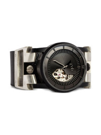 P4—FOB #404 41mm Highlights - Black dial - Round case - Skeleton dial - Automatic movement - Metal bezel - Studded leather strap - Crown - This item comes with a standard one-year warranty from the brand. Made in France SIZE & FIT Measurement DIAMETER 1.62 in(4.1 cm) WIDTH 1.18 in(3 cm)