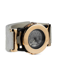 P4—FOB Watch #8258 42mm Highlights - Black - 42mm - Leather strap - Round case shape - Skeleton dial type - Visible automatic movement - Rose gold-tone plated bezel - Crown - This item comes with a standard one-year warranty from the boutique. Imported SIZE & FIT Measurement DIAMETER 1.57 in(4 cm) WIDTH 1.29 in(3.3 cm)