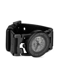 P4—FOB Watch #8272 42mm Highlights - Silver-tone dial - 42mm case size - Round case - Skeleton dial - Automatic movement - Black leather strap - Integrated crown - This item comes with a standard one-year warranty from the boutique. Imported SIZE & FIT Measurement DIAMETER 1.65 in(4.2 cm) WIDTH 1.29 in(3.3 cm)