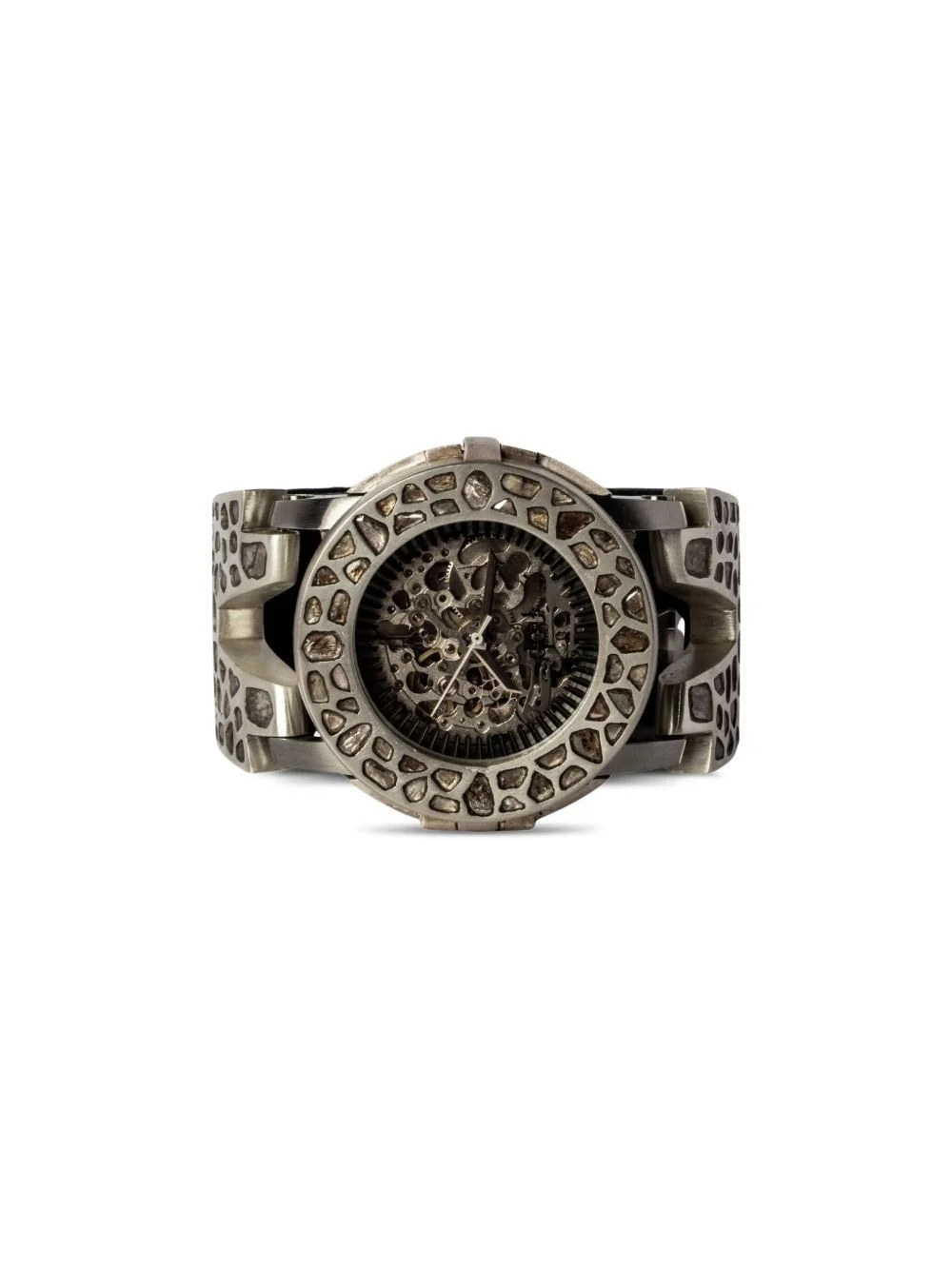Skeleton pave 40mm Highlights - Black - Round case - 40mm case - Skeleton dial - Pave bezel - Automatic movement - Push-down crown - This item comes with a standard one-year warranty from the boutique. Imported SIZE & FIT Measurement DIAMETER 1.65 in(4.2 cm) Strap width 1.18 in(30 mm)