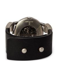 x Fob Paris #189 42mm Highlights - 42mm - 10kt white gold-plated sterling silver - Miyota 8n24 automatic skeleton movement 21 jewels - Round face - Partial open-work dial - Baton hands - Mineral glass - Anti-reflective coating - Skeleton case back - Black - Leather strap - Stud fastening - 21,600 vibrations per hour - 40-hour power reserve - Water resistance up to 50m/5 atm Imported