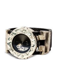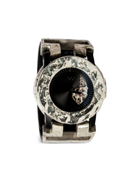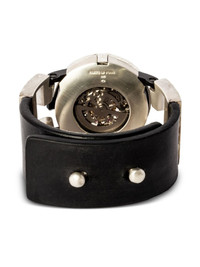 x Fob Paris #60 42mm Highlights - 42mm - 10kt white gold-plated sterling silver - Miyota 8n24 automatic skeleton movement 21 jewels - Round face - Partial open-work dial - Baton hands - Sapphire glass - Anti-reflective coating - Skeleton case back - Black - Leather strap - Stud fastening - 21,600 vibrations per hour - 40-hour power reserve - Water resistance up to 50m/5 atm Imported SIZE & FIT Measurement CIRCUMFERENCE 0.7 in(1.8 cm) DIAMETER 1.62 in(4.1 cm) WIDTH 1.18 in(3 cm)
