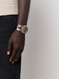 x Fob Paris R154 Mega Pave watch Parts of Four showcases their knack for artisanal jewellery craftsmanship techniques with this dazzling watch. The antique-silver toned frame is paved with diamond slivers that were individually placed onto the mold for a unique finish. Made in France SIZE & FIT Model measurements Height 6 ft 2 in(1.87 m) Bust/Chest 36.41 in(92.5 cm) Hips 37 in(94 cm) Waist 29.52 in(75 cm)