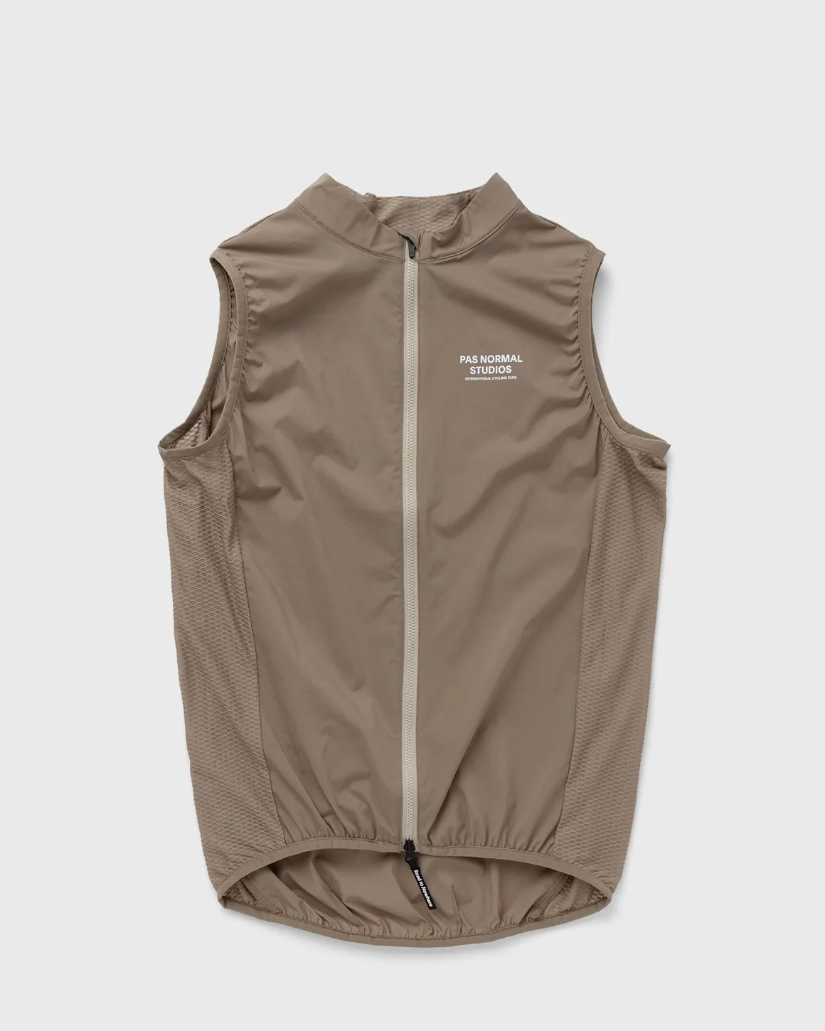 The Pas Normal Studios Stow Away Vest stows easily in your back pocket, so you're always well equipped and prepared for sudden rainy weather. Built on a DWR-treated Japanese fabric technology, it provides optimal wind protection and withstands occasional rain showers. - Two-way zipper for easy access - Protected zipper ends - Stretchy mesh side panels - Stows easily in back pocket - Fluorine-free DWR finish - Quick drying Article Number: MO2173H-BEIGE Gender: Men Color: BEIGE Material: 100% Nylon